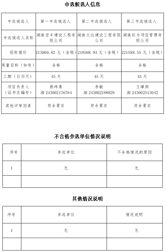 永州分公司涉水檢驗設施建設工程公開比選中選候選人公示